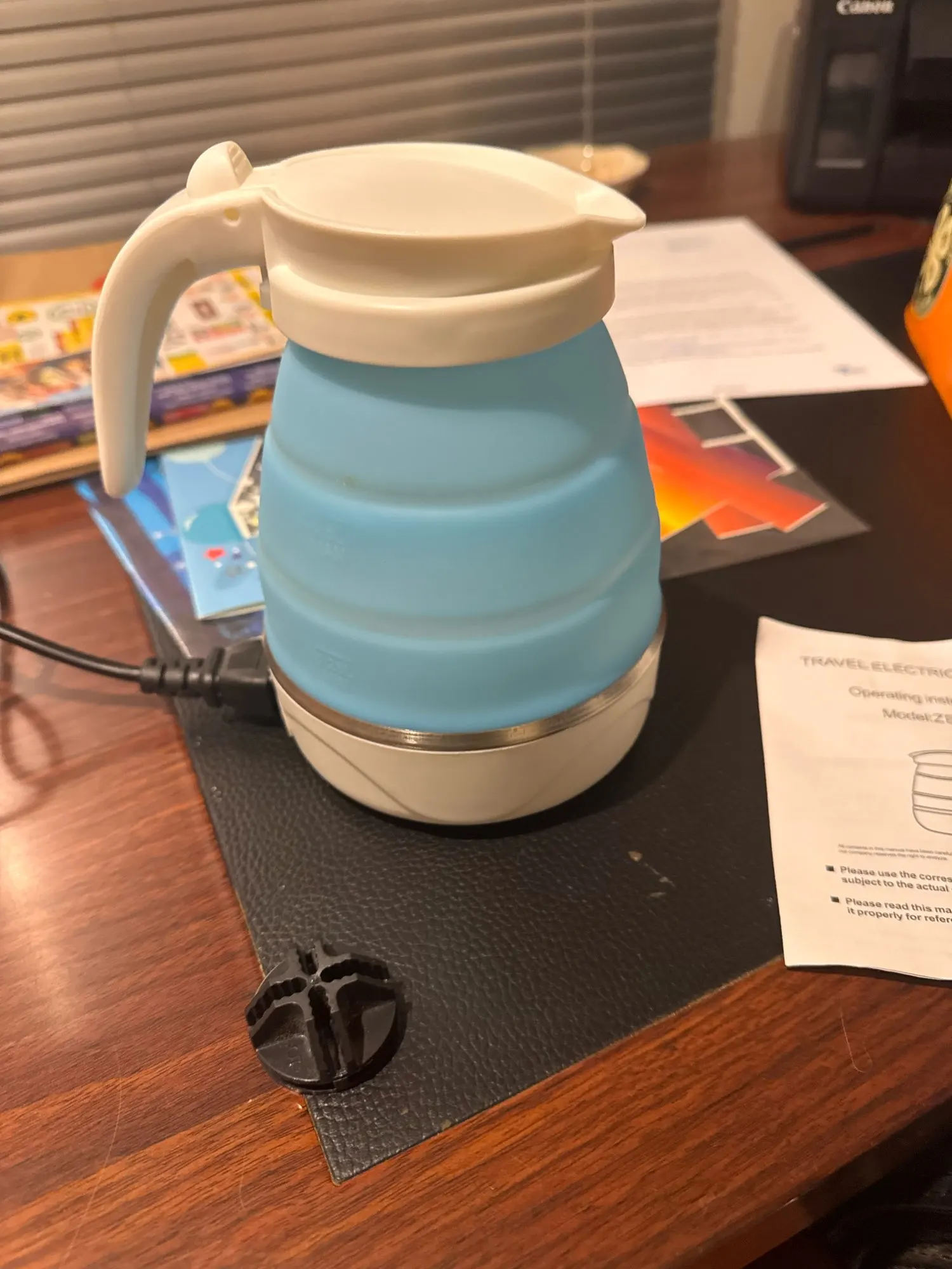 Enjoy hot beverages anytime, anywhere with our Foldable Travel Electric Kettle. Designed for convenience, this compact teapot features an adjustable temperature setting, fast heating, and a collapsible body for easy storage. Whether you’re at home, in the office, or on the road, it’s the perfect companion for tea, coffee, or instant meals.